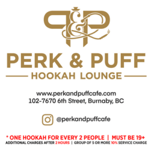 Perk & Puff Café is a cozy and inviting spot located in Burnaby, British Columbia. Known for its relaxed atmosphere, it offers a variety of beverages, light snacks, and hookah options. Whether you're looking to unwind, socialize with friends, or enjoy some downtime, Perk & Puff Café provides the perfect setting for a memorable experience.